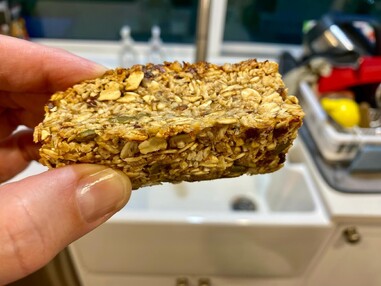 I like to double this recipe so I get 12 bars, but you could use the amounts listed above that make approximately 6 bars. Mix all the ingredients together until well chopped and then press firmly into a bar mould, or a square tin pan. Bake for 20 minutes on 180 or until the edges are slightly brown. If you've used a tin, then cut into desired bars and allow to cool before refrigerating. Enjoy!